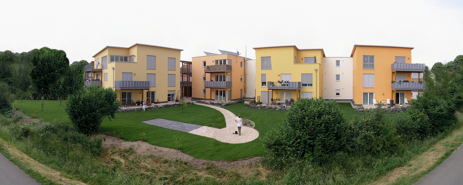 Wir haben ein Ensemble von vier Häusern in energieeffizienter Bauweise mit insgesamt